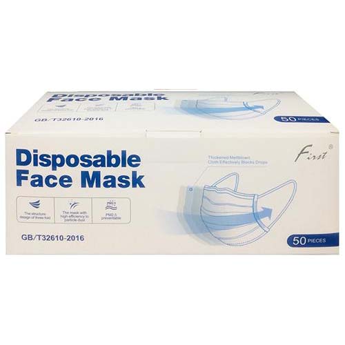 Blauwe mondmaskers – wegwerp & niet-medisch. 3-laags. De verpakking bevat 50 stuks.