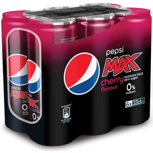 Een lekkere, verfrissende en suikervrije cola met een opwindende kersensmaak. Pepsi Max Cherry heeft de maximale smaak van Pepsi Max , maar dan met een verrassende kersensmaak. Maximale cherry flavoured Pepsi colasmaak! 6 x 33cl