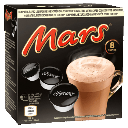 Mars-pod met warme chocolademelk voor Nescafé Dolce Gusto.