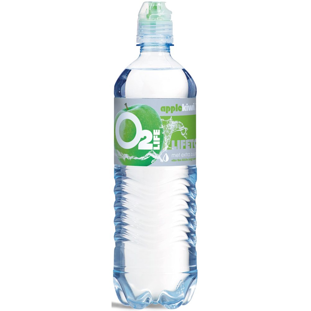 O2Life Apple & Kiwi. Flavored water met extra zuurtsof in een handige 750 ml fles met unieke sportdop.