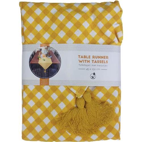 Of je nu je eettafel wil opfrissen of een gezellige sfeer wil creëren voor gasten, deze gele tafelloper met kwastjes is een eenvoudige en stijlvolle oplossing. Bestellingen worden geleverd binnen 1 tot maximaal 4 werkdagen, via DPD of via eigen transport, afhankelijk van de postcode.