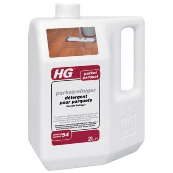 HG Parketreiniger 2L. Fris ruikende dweilreiniger speciaal ontwikkeld voor het regelmatig streeploos reinigen van zowel gelakt parket als parketvloeren behandeld met de HG parket beschermfilms.