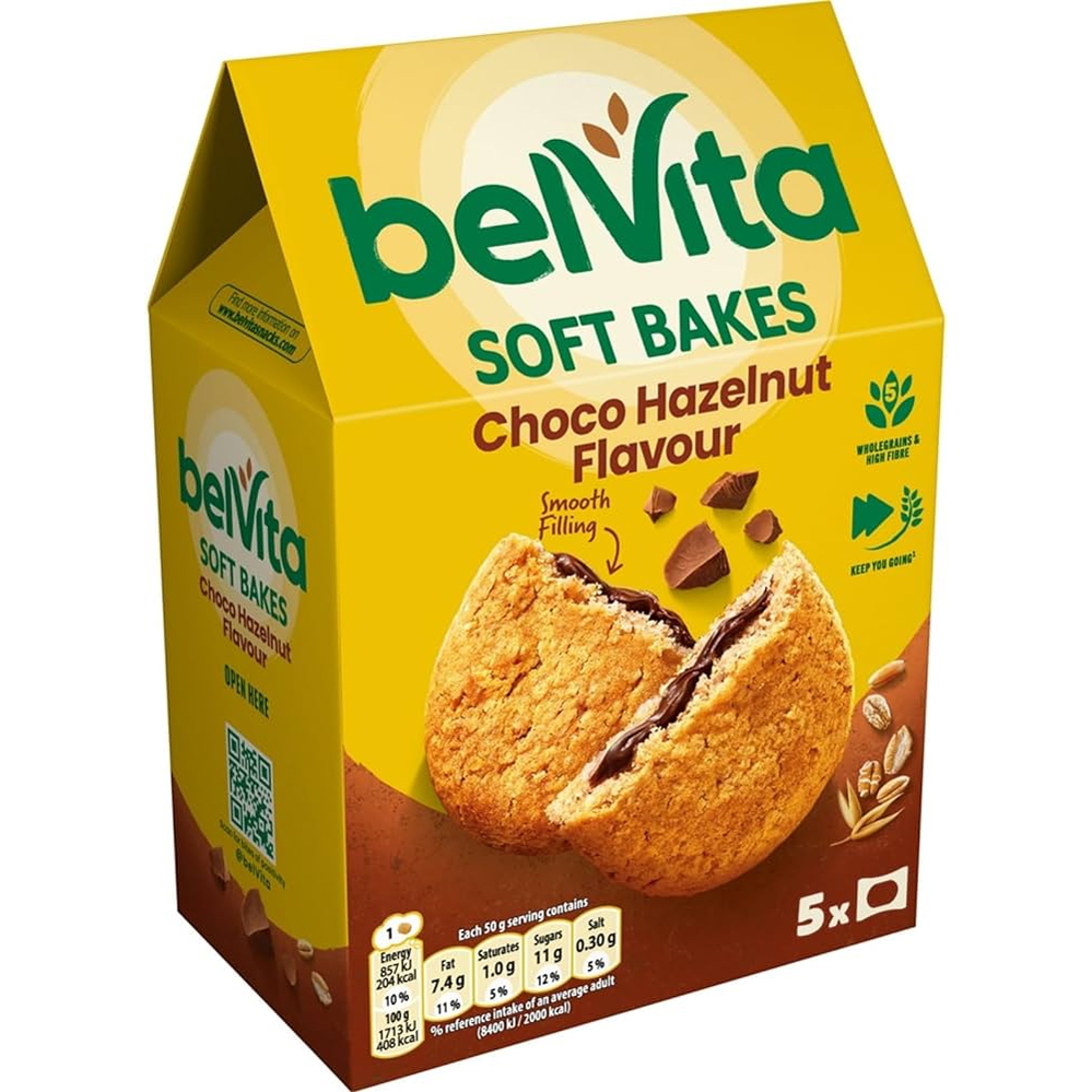 Belvita Soft Bakes snackkoekjes zijn zachte volkorenkoekjes met extra heerlijke aardbeivulling. Toegevoegde vitaminen en mineralen. Als ontbijt, als tussendoortje of als traktatie! De verpakking bevat 5 individueel verpakte koekjes.