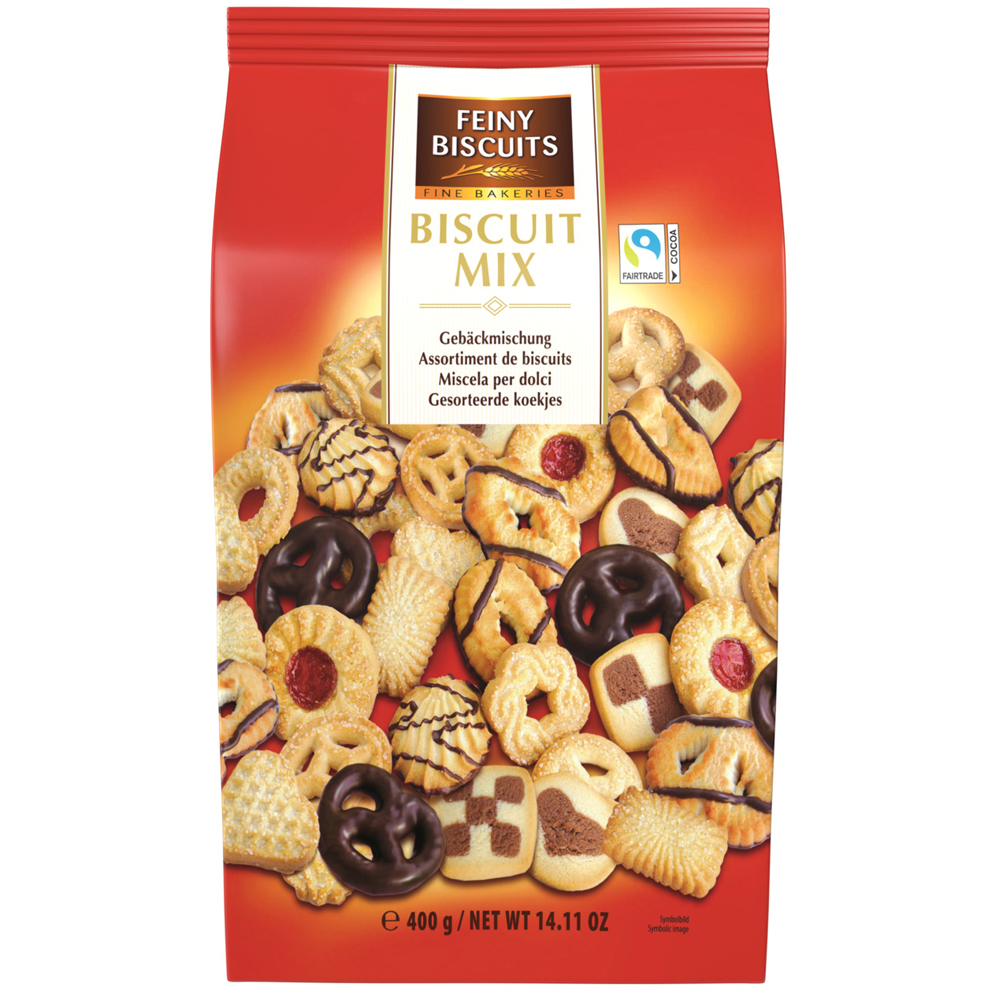 Of het nu voor een vergadering, een conferentie of voor familie en vrienden is – met de koekjesmix van Feiny Biscuits maak je iedereen blij. 400g.