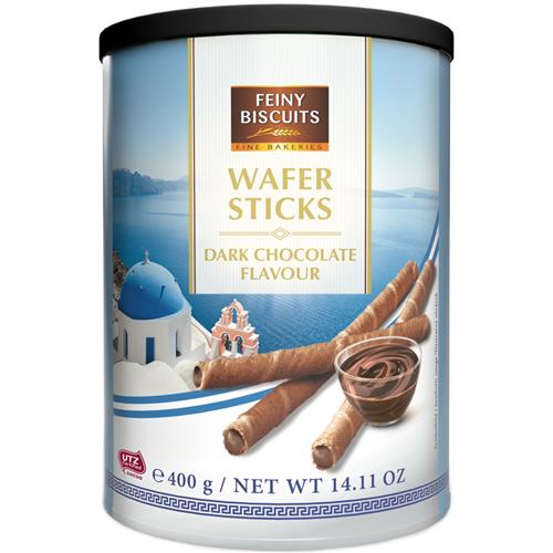 Wafelrolletjes van Feiny Biscuits gevuld met cacao-hazelnootcrème – Deze heerlijke wafelrolletjes zijn onweerstaanbaar als dessert. 400g.