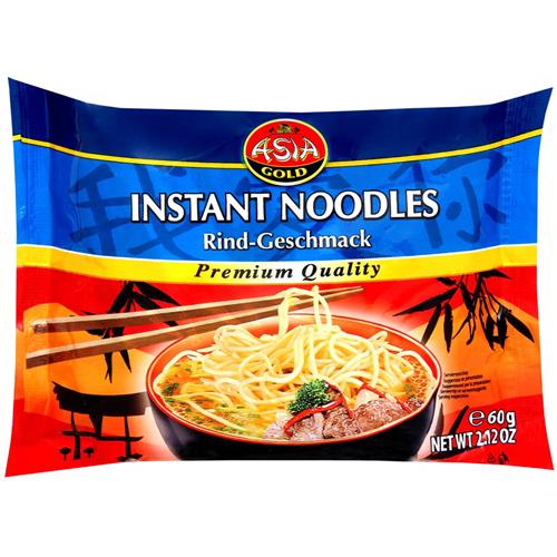 Instantnoedels met rundvleesaroma en kruiden van Asia Gold, 60g.