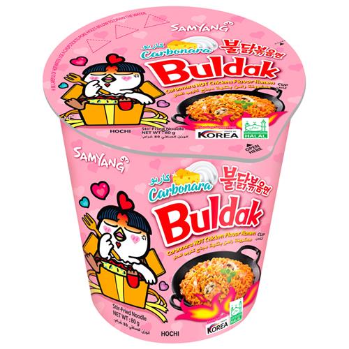 De Samyang Cup Carbonara (80 g) combineert de rijke, romige smaak van carbonara met de pittige kick waar Samyang om bekendstaat. Deze Koreaanse instant noodles in een handige cup zijn ideaal voor wie houdt van comfortfood met een spicy twist.
