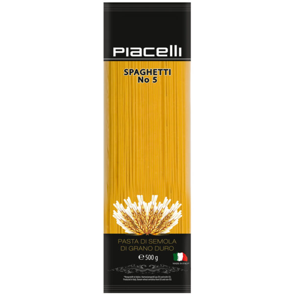 De meest populaire pastasoort onder Italianen: spaghetti Piacelli pasta is perfect met … tomatensaus, olie en basilicum, bolognese, carbonara,… 500g.